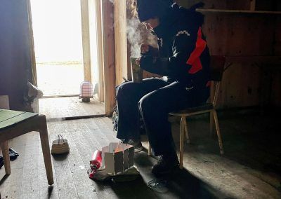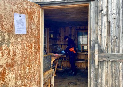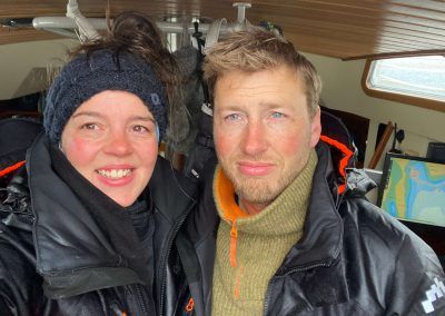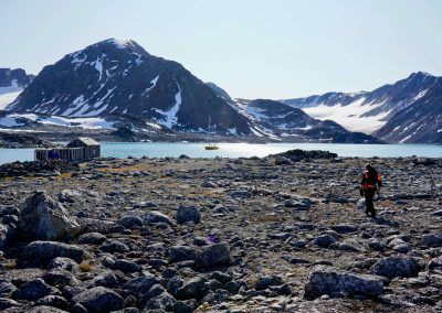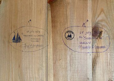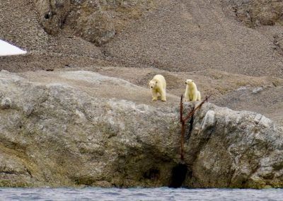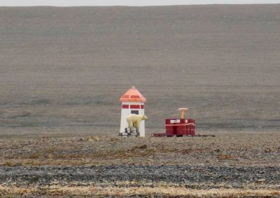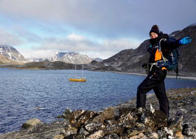 Als de volgende dag de wind is gaan liggen en Saraban’de nog steeds op dezelfde plek ligt, gaan we weer aan land. In Kinnvika is een enorm onderzoeksstation met wel dertien gebouwen waar sinds 1957 allerlei onderzoeken worden gedaan. Oorspronkelijk naar meteorologie, geomagnetisme en het noorderlicht, en vrij recent voor studies naar klimaatverandering, glaciologie en milieuvervuiling. Bijna alle gebouwen zijn open, dus we vermaken ons uren met alles ontdekken. We vinden zelfs een tekeningetje van Jan en Paula in één van de gebouwen uit 1985 – zo bijzonder! Met trots tekenen we onze eigen versie ernaast. Later die dag wandelen we nog naar de top van de berg en drinken een biertje op het strand. We wilden eigenlijk een vuurtje maken, maar werden door een andere boot in de ankerbaai gewaarschuwd dat er een ijsbeer op een kilometer afstand van ons ligt te slapen… We zijn extra voorzichtig dus. Als we de dag erop willen vertrekken, zien we de eerste twee ijsberen tijdens ons Spitsbergen-avontuur, yihaa! Theoretisch kunnen we nu naar huis :-)….