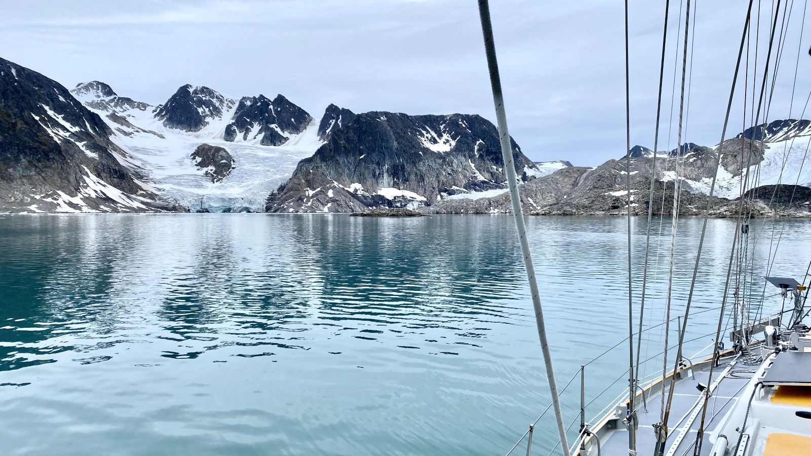 Het loopt natuurlijk anders dan gepland. De wind laat ons volledig in de steek en de zeilen klapperen in de windstilte. Resultaat: de motor draait de hele dag onafgebroken – een goed begin, haha. Na twaalf uur varen, zo’n zestig mijl, bereiken we Virgohamna. In 2023 waren we hier ook, en het voelt goed om hier weer te ankeren én rond te lopen in het gebied met zijn rijke geschiedenis, waar zelfs ooit Nederlandse walvisvaarders hun stationnetjes hadden. In deze blog heb ik daar uitgebreid over geschreven.