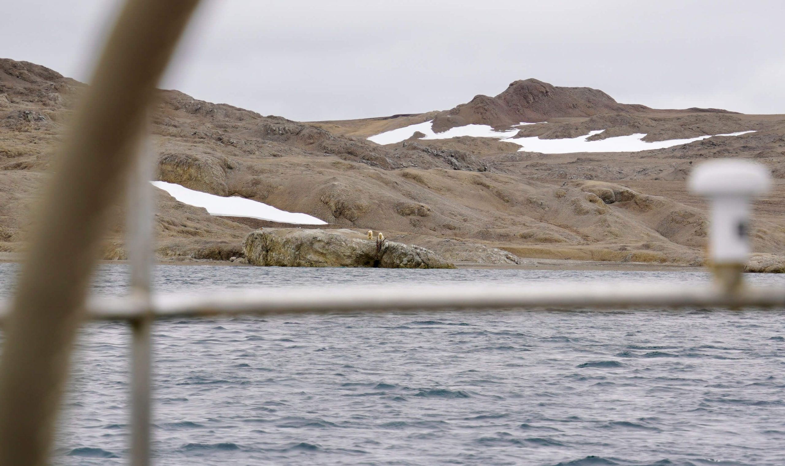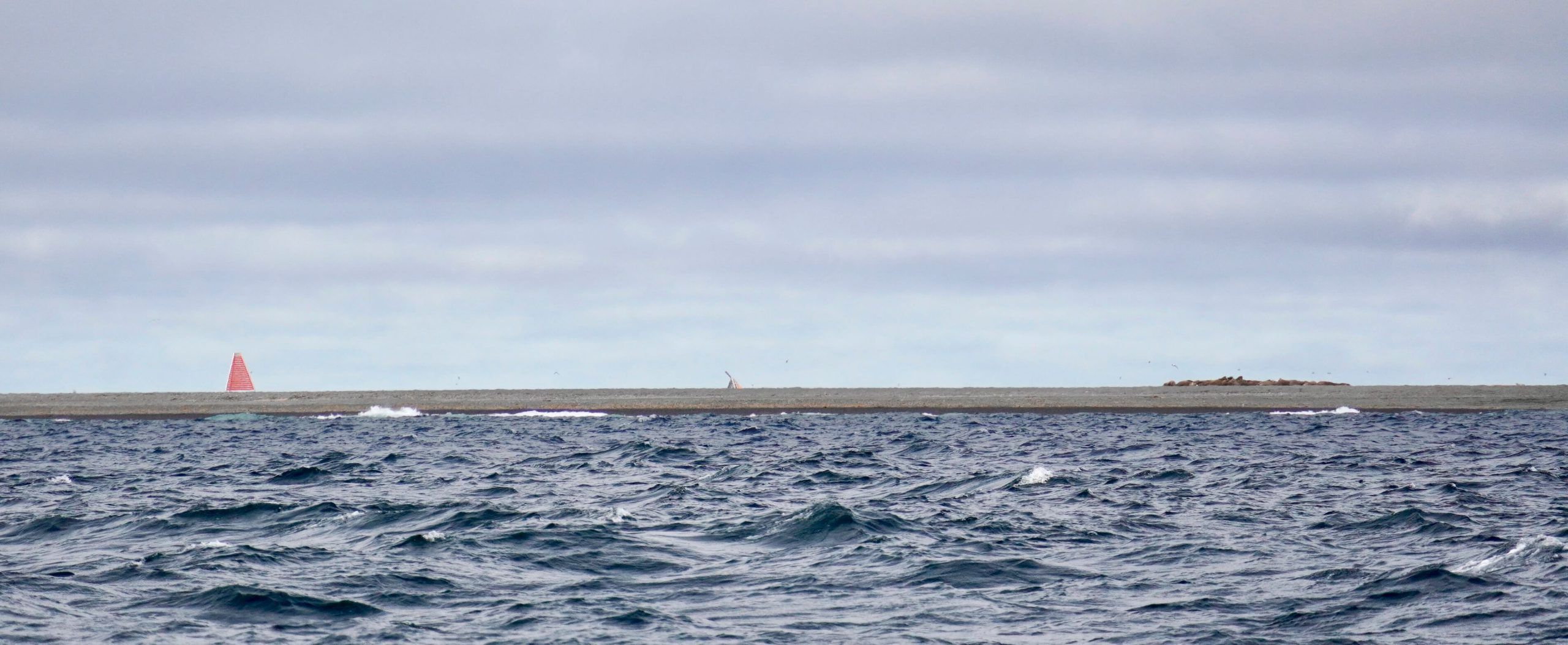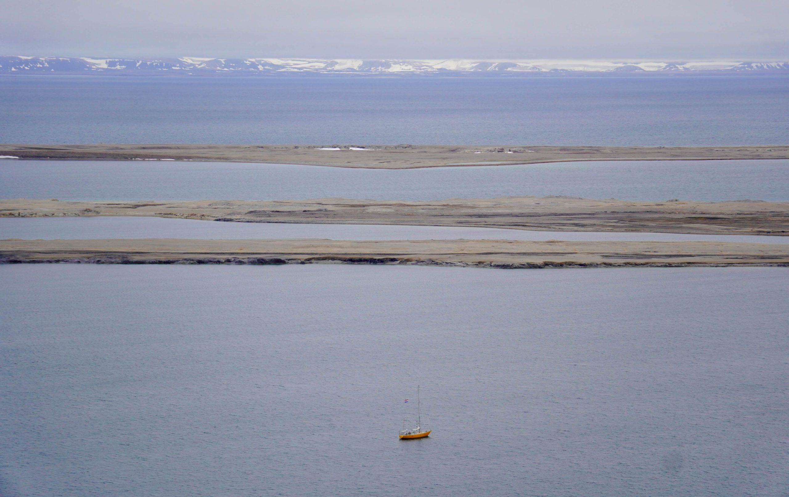 De volgende dag brengt een stevige westenwind ons langs de noordpunt van Spitsbergen, een stuk dat we nog niet eerder hebben bevaren. Halverwege zien we Moffen, een vlak eiland met een grote walruskolonie. Vanaf zee zien we hun logge lichamen op het strand liggen, dicht tegen elkaar aan. We blijven op een afstand van zo’n 2 mijl, want het gebied is beschermd, maar we kunnen ze toch best goed zien. Even later ronden we het noordelijkste puntje van Spitsbergen – een heel bijzonder gevoel. Vanaf nu gaat de route weer zuidwaarts!