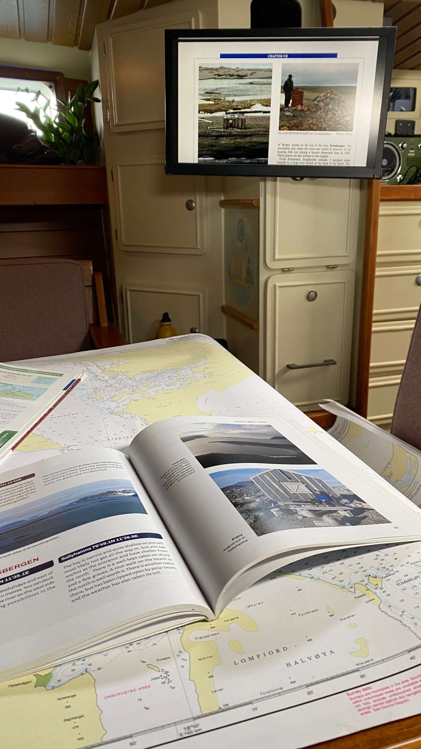 Zo ver weg van alle beschaving, op een totaal onbekende plek voor ons, geeft ons best wat spanning en een kwetsbaar gevoel. Moeten we misschien al terug? Krijgen we wel een goed weergat? Of hebben we straks alleen wind tegen op de terugweg? Terwijl we verwaaid liggen, lezen we de reisverhalen van Jan en Paula Wit, die in 1985 al naar Spitsbergen voer met de Bastaerd van Campen. Hij had toen geen online weerberichten, geen gps, geen digitale kaarten of een lijntje met het thuisfront over wat het weer ging doen. Nee, hij voer gewoon in één streep van Terschelling naar Moffen op 80 graden noord, in 19 dagen op volle zee. De barometer was zijn graadmeter voor de ruimende of krimpende wind, een zonnetje schoot hij met de sextant om op de papieren kaart zijn positie te bepalen, en hij lag etmalen bij als de wind te hard was. Hij voer ankerbaaien in tussen de rotsen door, zonder een kaart waarop stond waar de rotsen precies lagen en waar hij zelf was ten opzichte hiervan. Beperkte pilots met informatie over het gebied, beschutte ankerplekken, stromingen of informatie over de bodem die wel of niet bezaaid was met kelp.