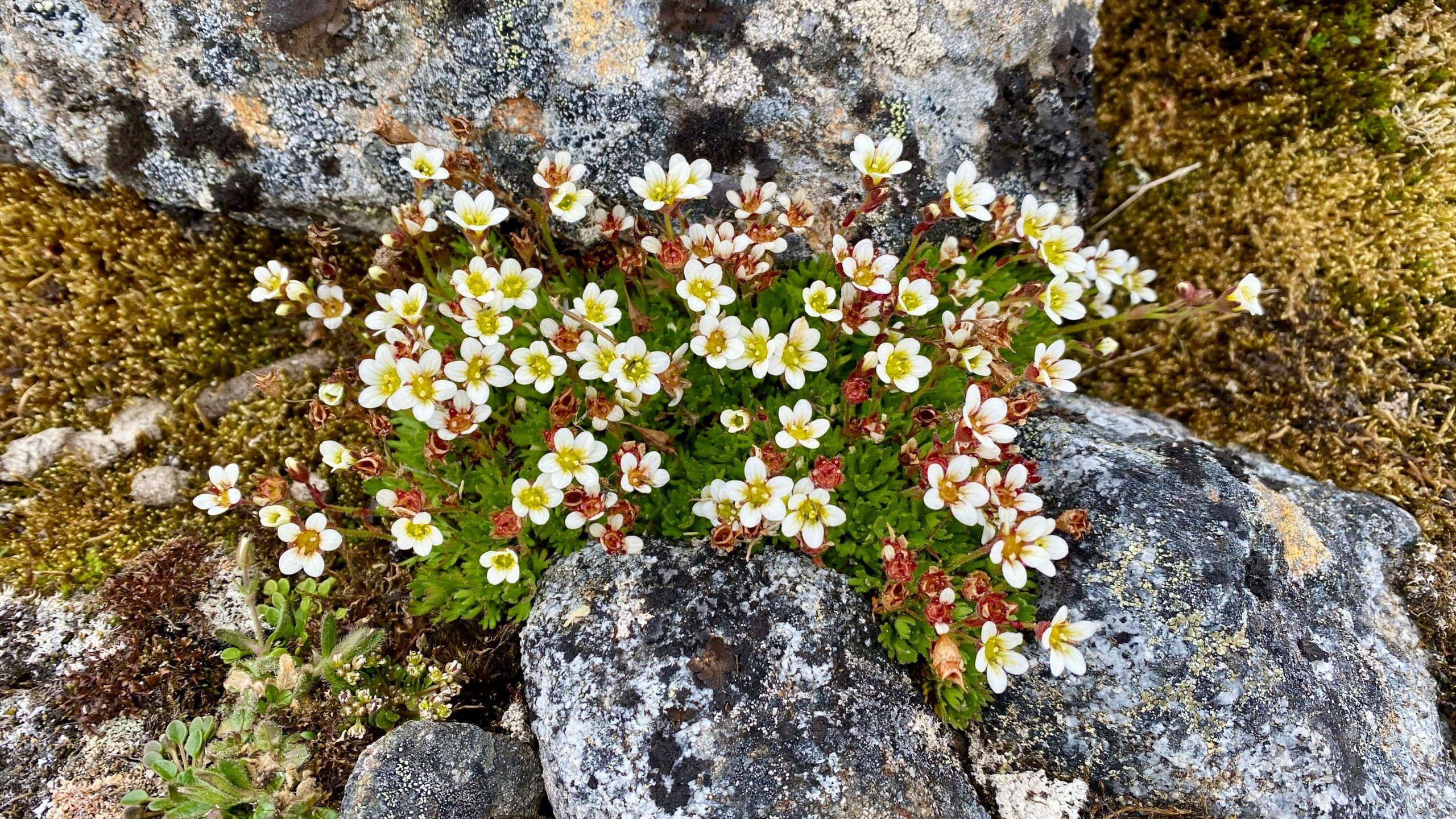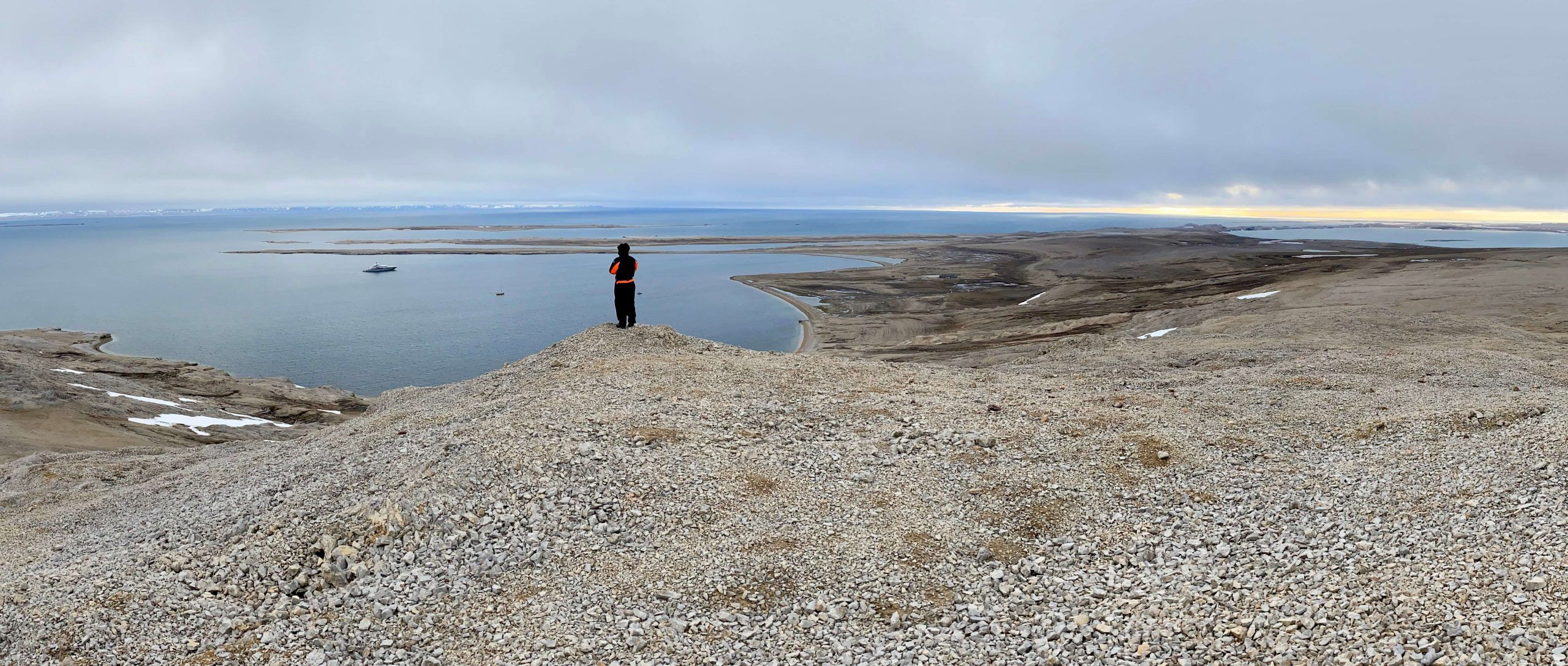 Dezelfde dag staat de Zeeuwse Uitkijk-wandeling op Ytre Norskøya ook nog op het programma, een activiteit die hoog op onze lijst staat. In de zeventiende eeuw liepen de Nederlandse walvisvaarders ook al naar de top van deze berg om te kijken waar het pakijs was en waar de walvissen zwommen, zodat ze er vervolgens op konden jagen. Zij noemden het eiland de Zeeuwse Uitkijk en later werd dit hernoemd door de Noren. De vele graven zijn nog steeds te zien, met – voor zover wij weten – vooral jongens van rond de 25 jaar… een realistische herinnering aan een ruige periode in de geschiedenis. We hebben supermazzel met het weer vandaag: het is uitzonderlijk rustig. We ankeren vlak naast het eiland, klimmen naar boven, maken koffie en zitten een tijdje te kijken over de eindeloze zee, die paarsachtig als een spiegel tot de horizon reikt.