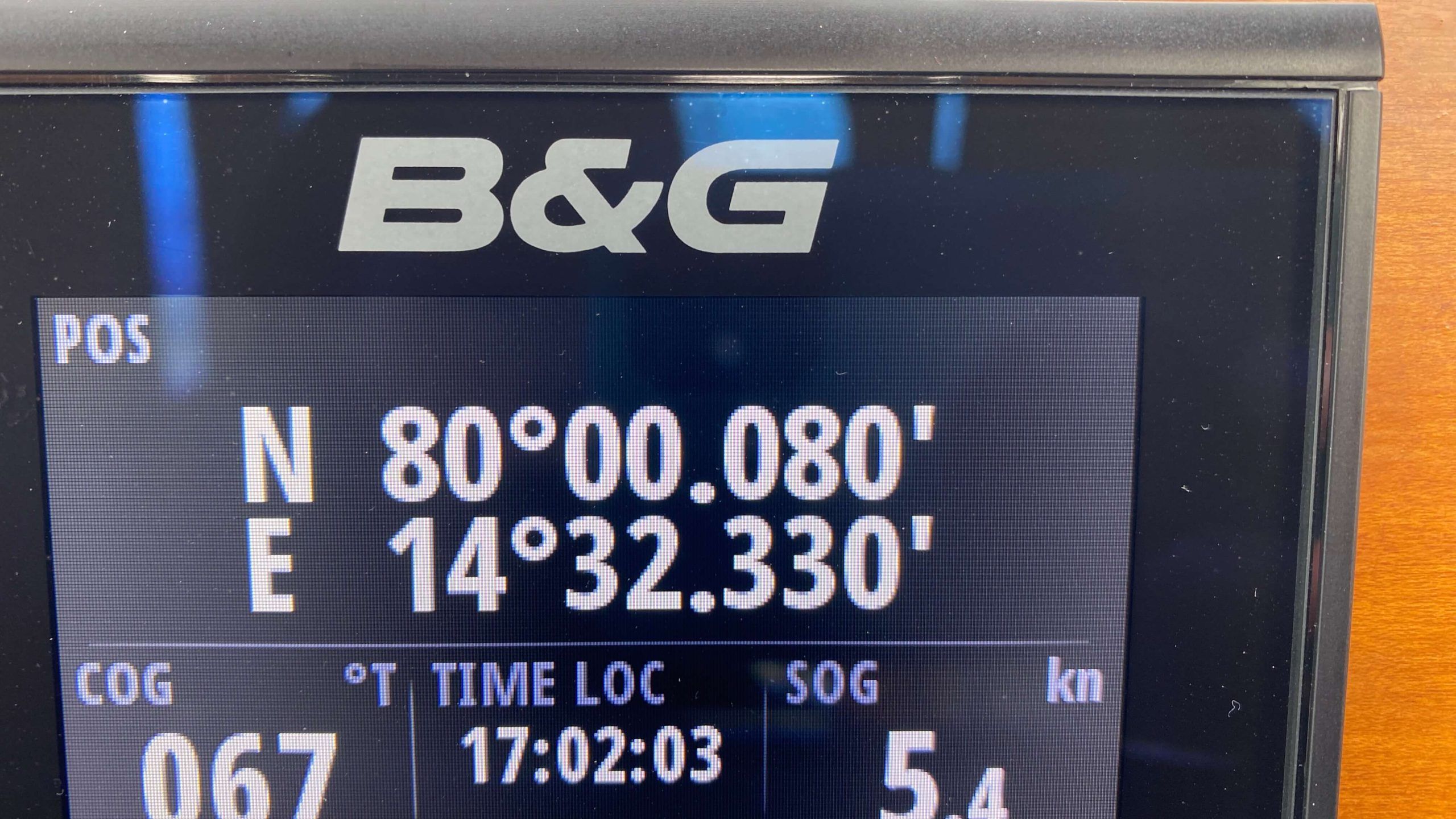 Het is 19 juli ’25 en we zijn nu zo’n twee weken op Spitsbergen. In Ny Ålesund tanken we de dieseltank tot de rand toe vol – 680 liter in totaal – want dit is de laatste plek waar we kunnen bijvullen voordat we verder noordwaarts gaan. Wat we nu aan boord hebben, moet genoeg zijn om helemaal rondom Spitsbergen te varen. Dat idee maakt het avontuur best spannend. Met alleen motoren redden we het niet, dus er moet gezeild worden. Het weerbericht ziet er goed uit: een ruime koers met een zuidwestenwind van 16 tot 20 knopen, precies zoals we het graag hebben. We besluiten vroeg te vertrekken, in de hoop dat we de hele dag kunnen zeilen en zo de diesel nog even kunnen laten waar die hoort: in de tank.