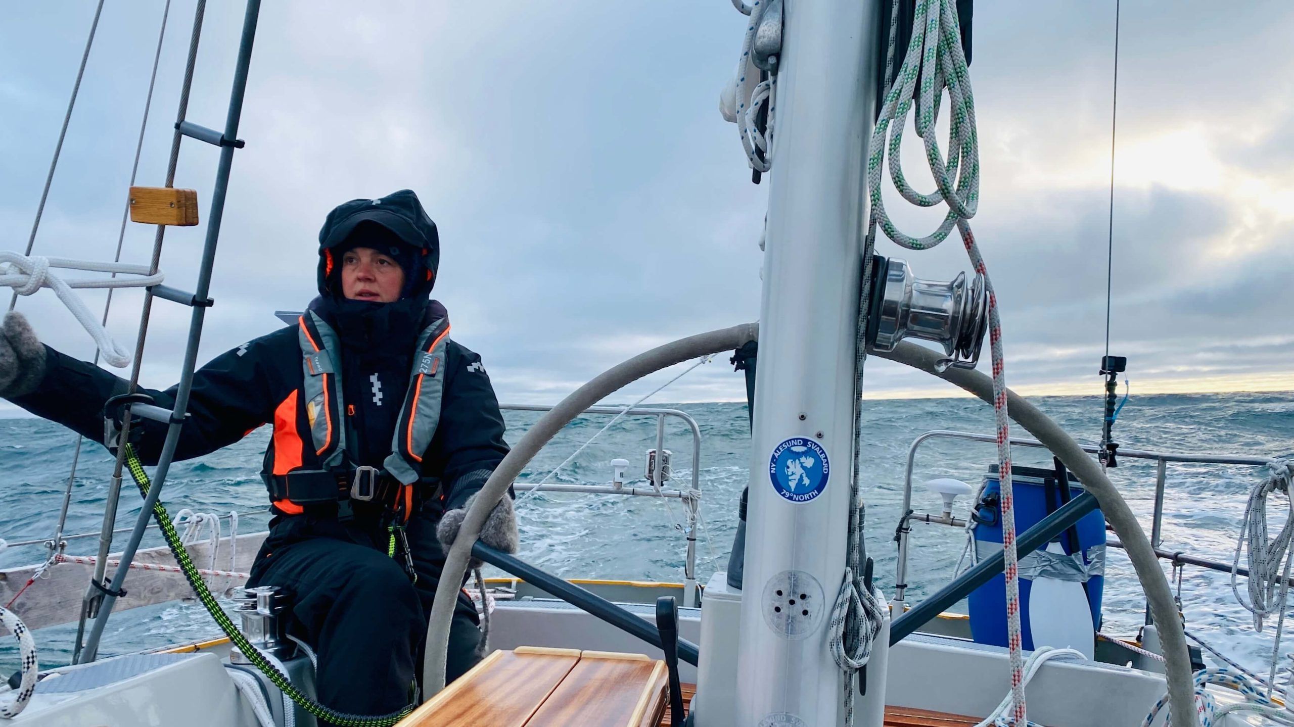 In de loop van de dag trekt de wind steeds meer aan. Nog zo’n 2 uur varen tot de beschutte baai van Kinnvika zitten we inmiddels in 30 knopen wind (7 Beaufort) met golven tot wel 3 meter. Het laatste stuk halve wind in de golven tussen alle rotsen door om de baai in te komen, maakt de tocht best spannend; we moeten zelfs twee stormrondjes maken omdat we in de harde wind niet kunnen gijpen. Als we eindelijk de baai invaren en de golven weg zijn, zijn we ook wel even opgelucht dat we het weer gehaald hebben. Niet dat het relaxen dan kan beginnen – integendeel. Het ankeren blijkt een ramp in Kinnvika, met meters dikke kelp op de bodem. Het kost ons wel een uur om eindelijk grip te krijgen met het anker en vast te liggen. Het is inmiddels 23:00 uur ’s avonds, 3 graden en nog steeds veel wind. We zijn blij dat we onder de wol kunnen.